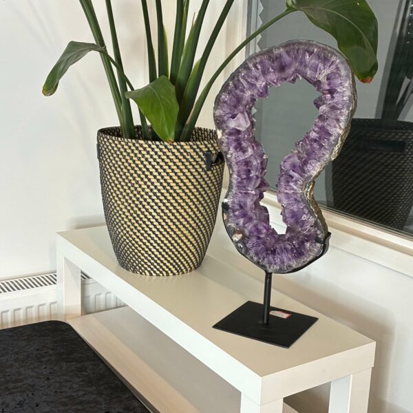 Ametyst hjælper med at fremme ro, grounding, intuition og mental klarhed. Ametyst åbner op for højere bevidsthed og beskytter mod negative energier og skaber en forbindelse til det åndelige plan.