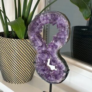 Ametyst hjælper med at fremme ro, grounding, intuition og mental klarhed. Ametyst åbner op for højere bevidsthed og beskytter mod negative energier og skaber en forbindelse til det åndelige plan.