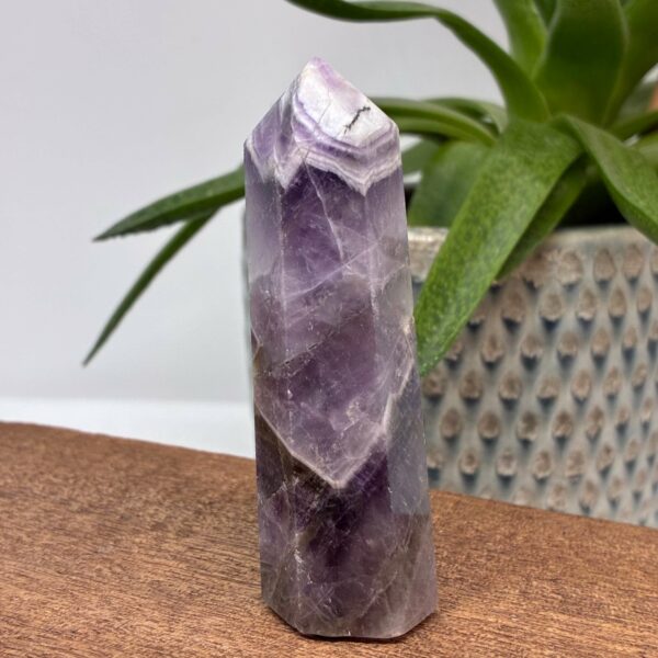 Båndametyst er en krystalkvarts med jernindhold. Den er god mod alkoholisme. Stimulerer drømme giver en god nattesøvn og virker beroligende. Ametyst generelt er en god begyndersten, den er en af de mest kendte sten og rummer en perfekt blanding af skønhed og energi.