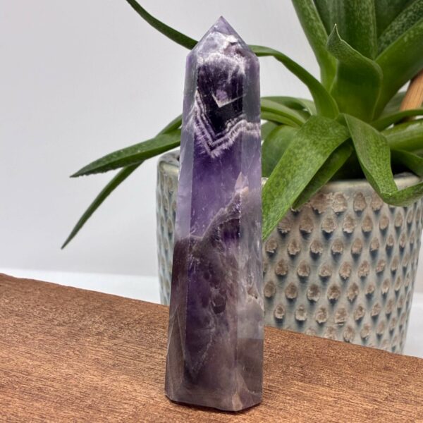 Båndametyst er en krystalkvarts med jernindhold. Den er god mod alkoholisme. Stimulerer drømme giver en god nattesøvn og virker beroligende. Ametyst generelt er en god begyndersten, den er en af de mest kendte sten og rummer en perfekt blanding af skønhed og energi.