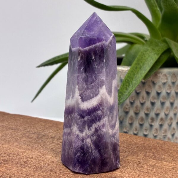 Båndametyst er en krystalkvarts med jernindhold. Den er god mod alkoholisme. Stimulerer drømme giver en god nattesøvn og virker beroligende. Ametyst generelt er en god begyndersten, den er en af de mest kendte sten og rummer en perfekt blanding af skønhed og energi.