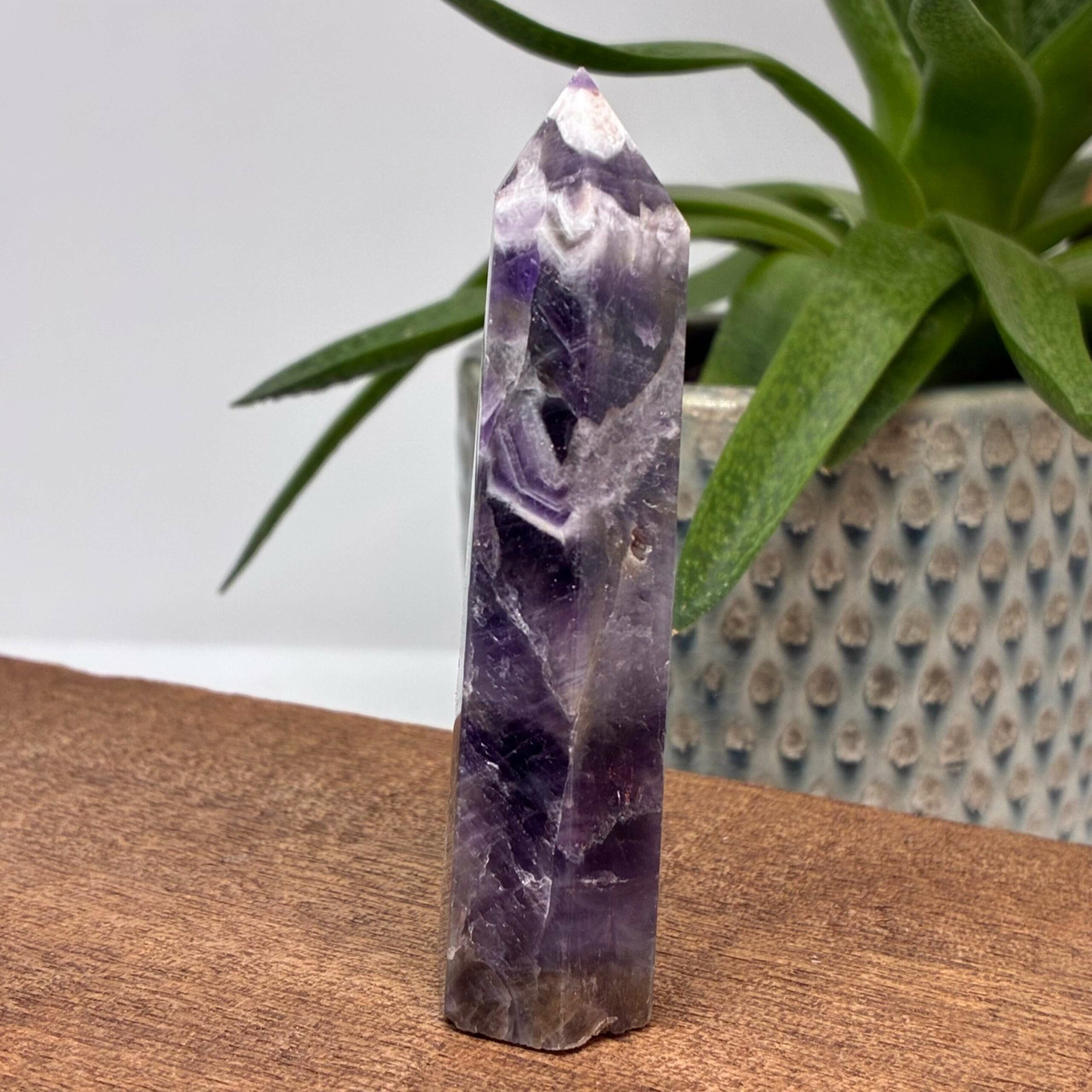 Båndametyst er en krystalkvarts med jernindhold. Den er god mod alkoholisme. Stimulerer drømme giver en god nattesøvn og virker beroligende. Ametyst generelt er en god begyndersten, den er en af de mest kendte sten og rummer en perfekt blanding af skønhed og energi.