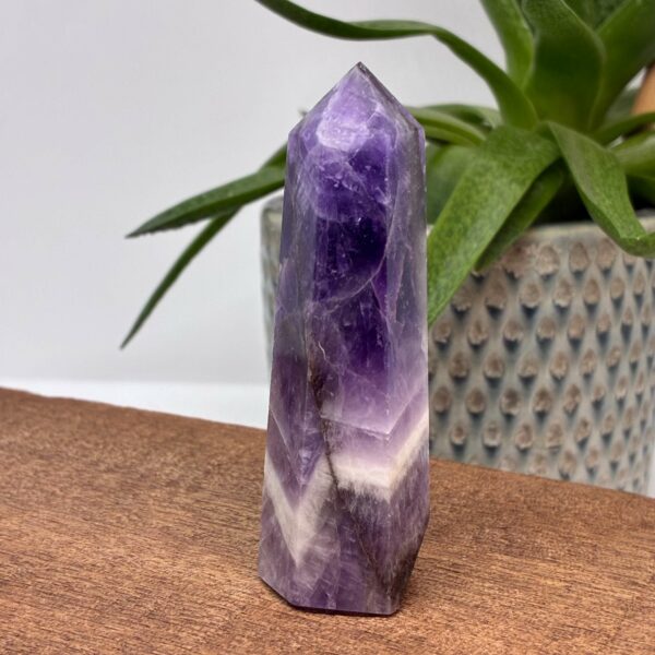 Båndametyst er en krystalkvarts med jernindhold. Den er god mod alkoholisme. Stimulerer drømme giver en god nattesøvn og virker beroligende. Ametyst generelt er en god begyndersten, den er en af de mest kendte sten og rummer en perfekt blanding af skønhed og energi.