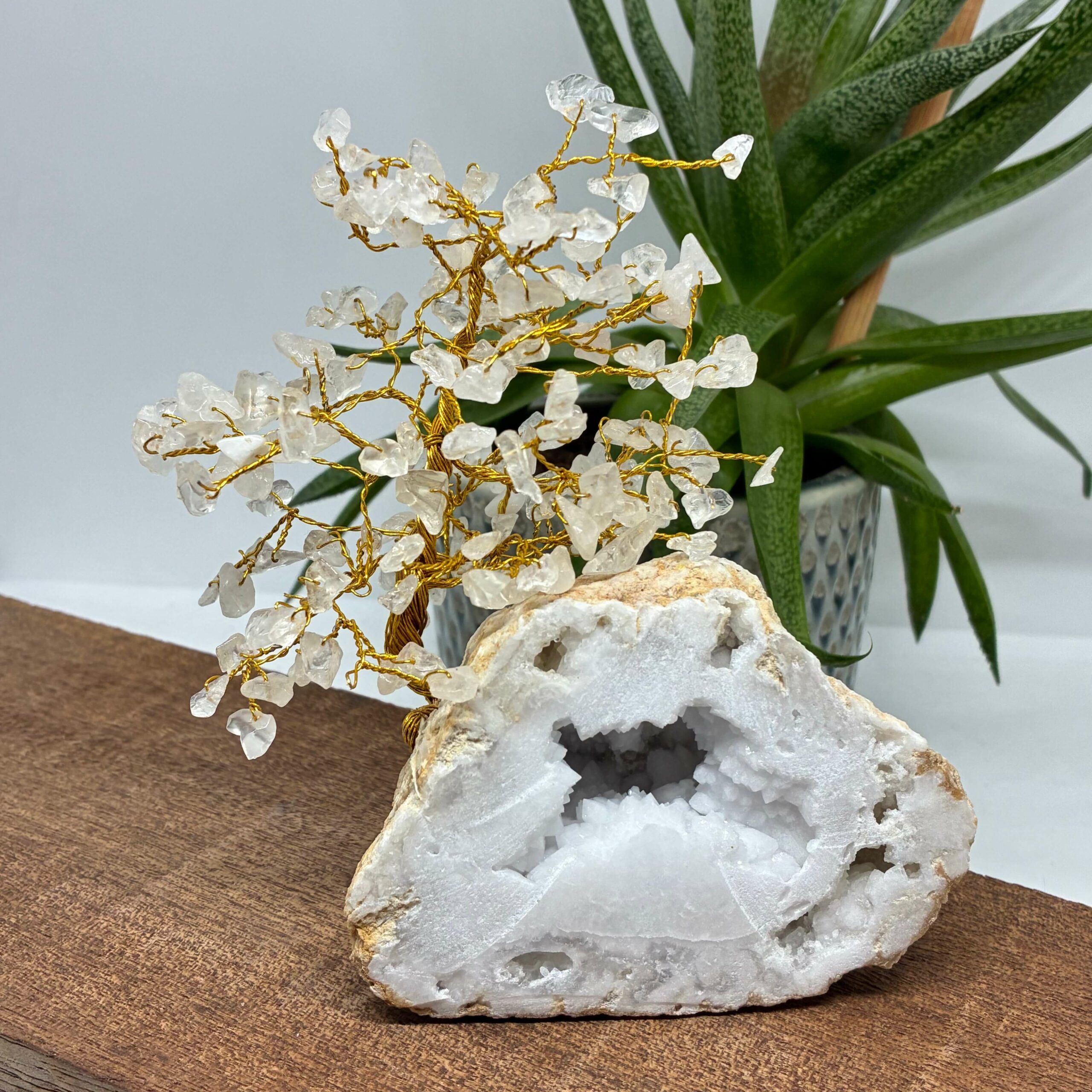 Bjergkrystal på Calsit Geode Krystaltræ (Lavet i Krystalhulen)