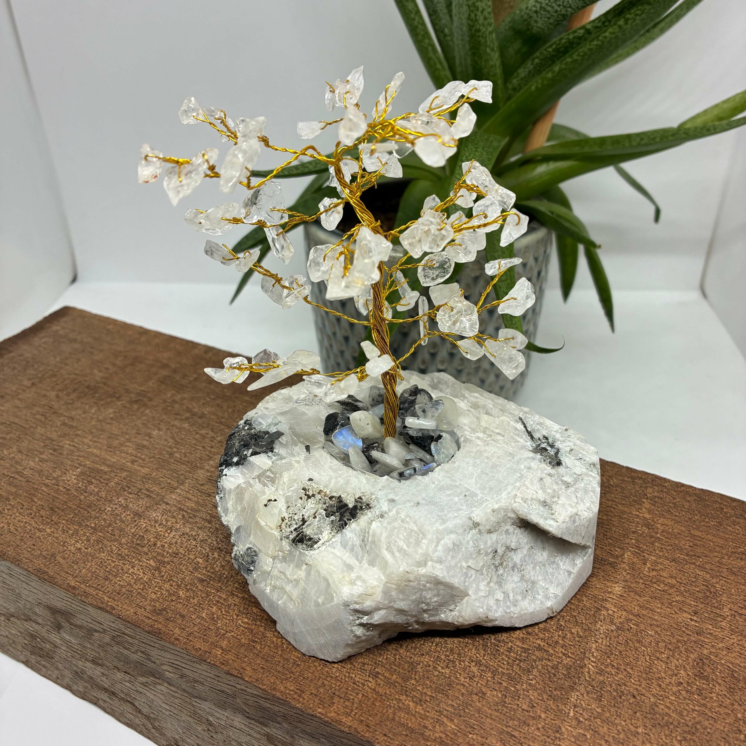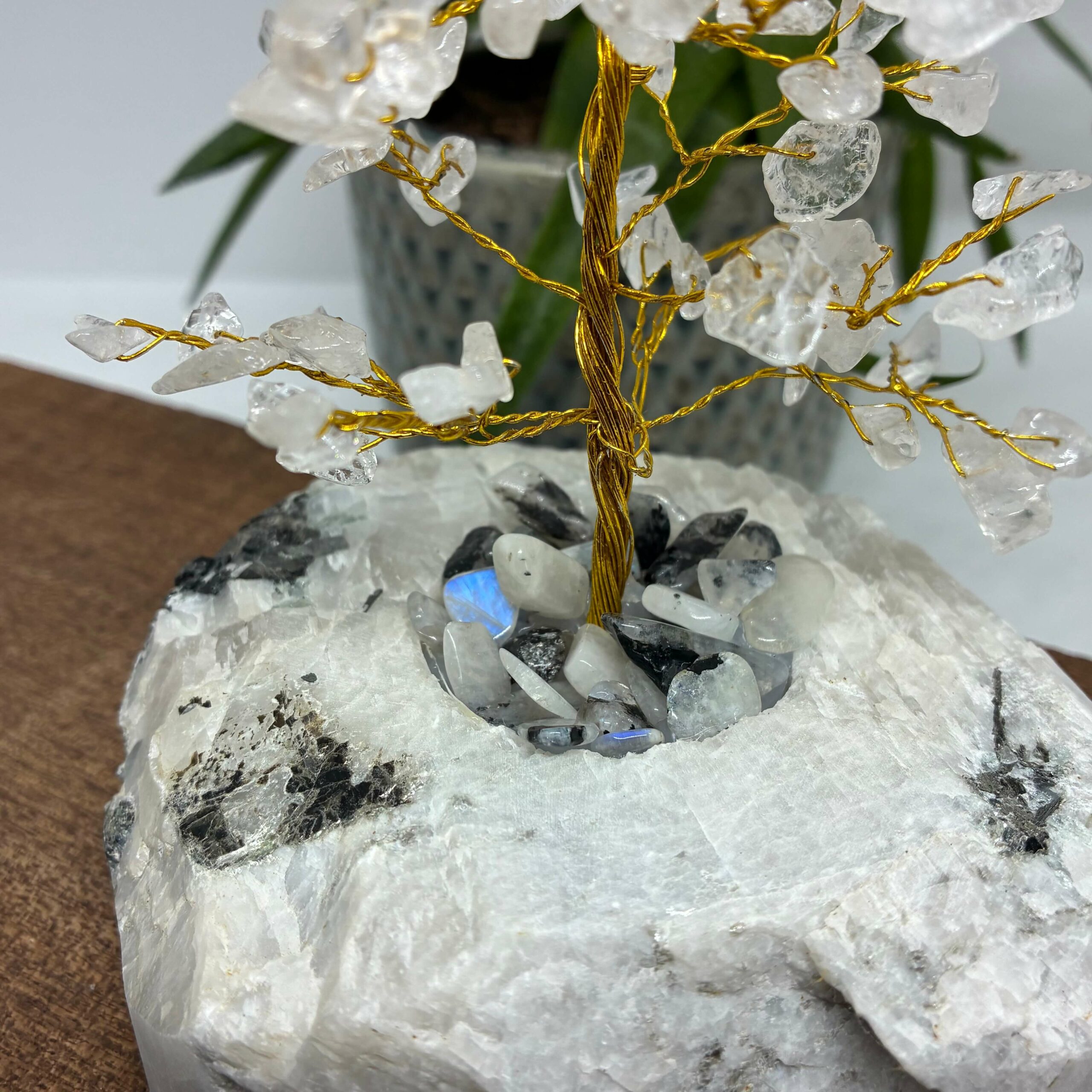 Bjergkrystal på Regnbue Månesten Krystaltræ (Lavet i Krystalhulen)