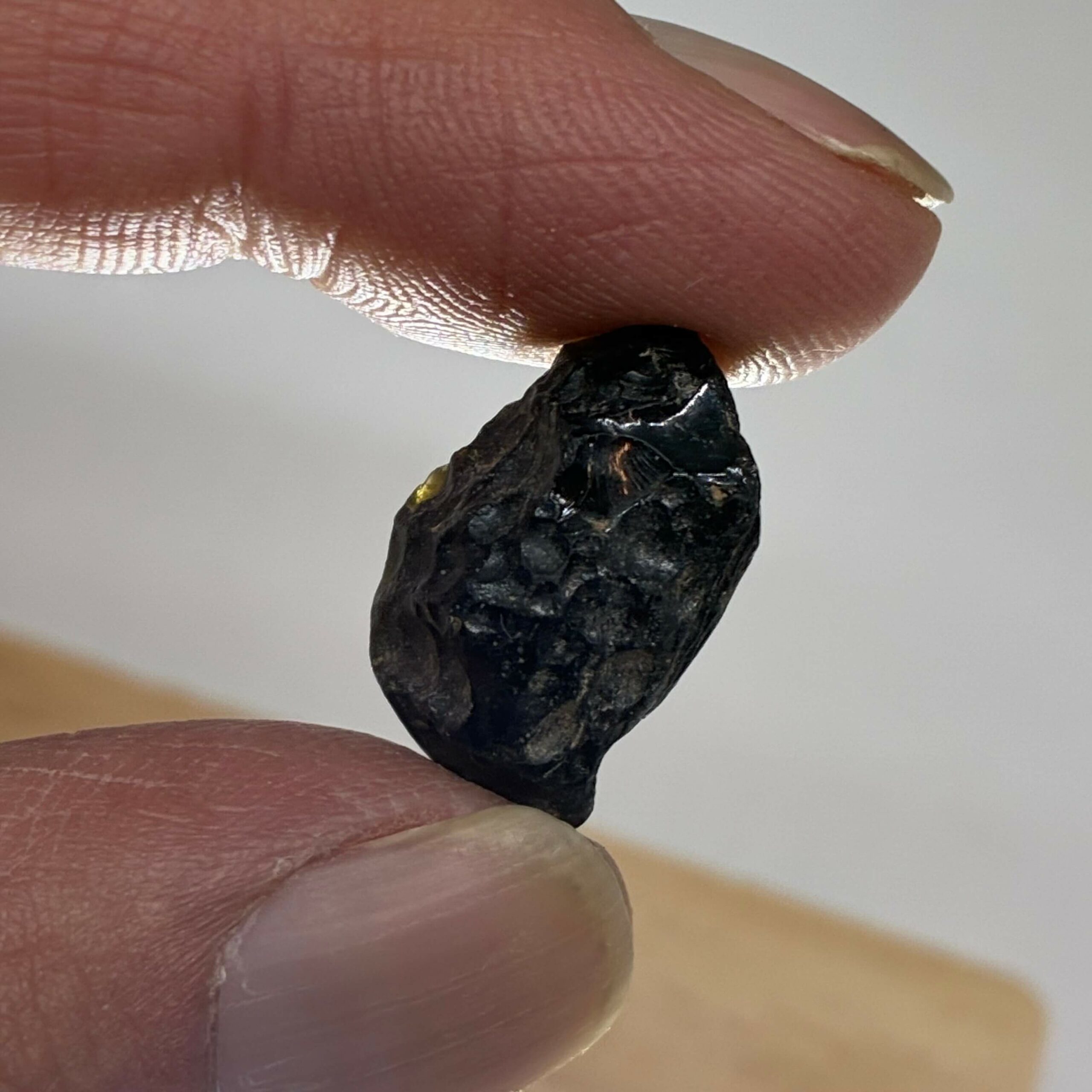 Colombianit er massiv og helt sort, men holdes den op mod skarp lys vil du få en gennemsigtig røgfarve.