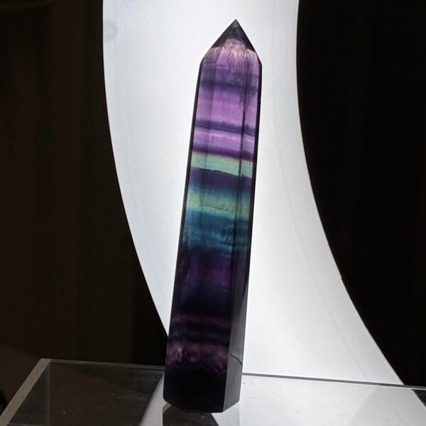 Den smukkeste kvalitet Fluorit med bånd og lækre farvespil. Ser mørk ud men i det rette lys kommer farverne frem.