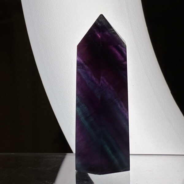 Den smukkeste kvalitet Fluorit med bånd og lækre farvespil. Ser mørk ud men i det rette lys kommer farverne frem.