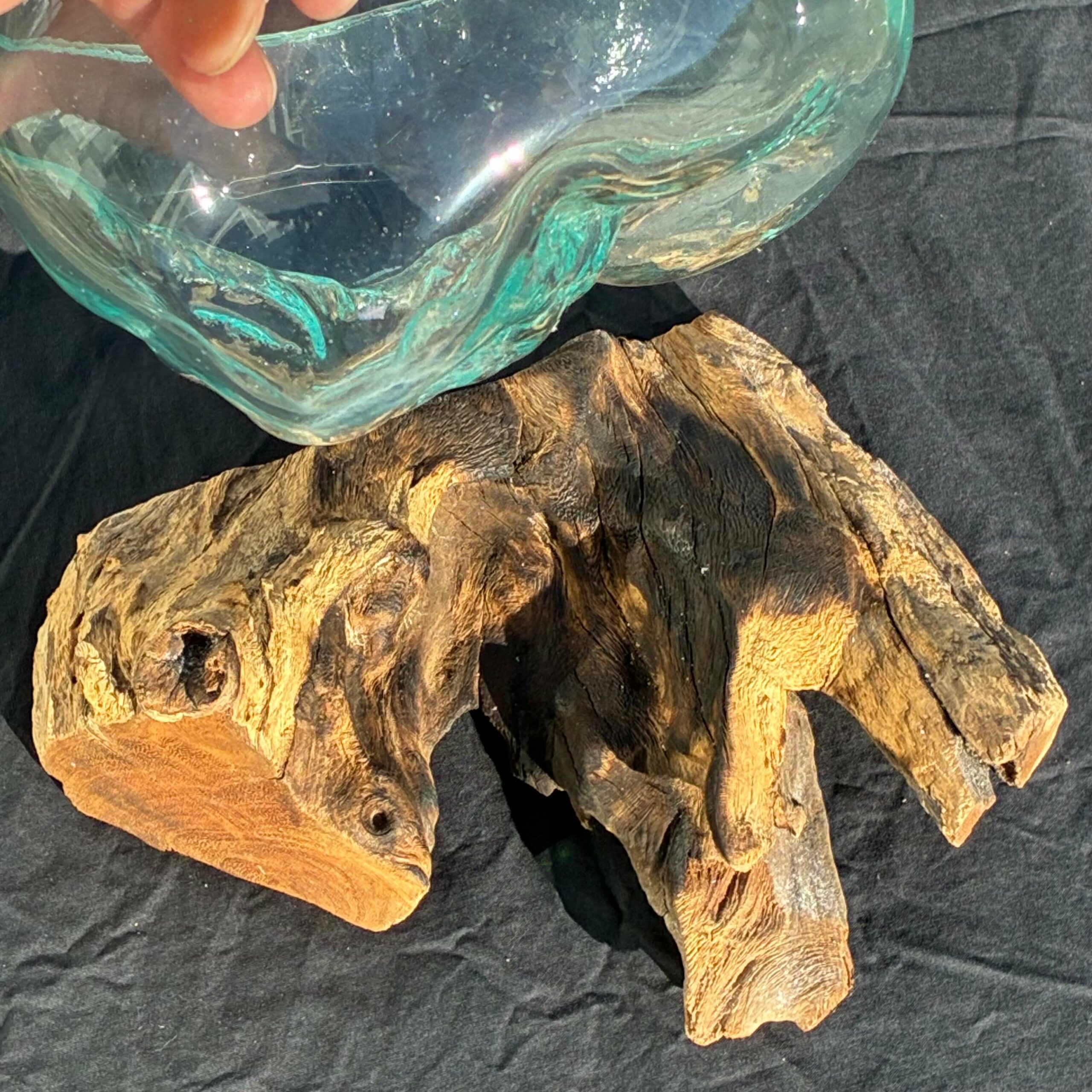 Hver glasskål og trærod er unik. Skålen er formet udfra rodens form.