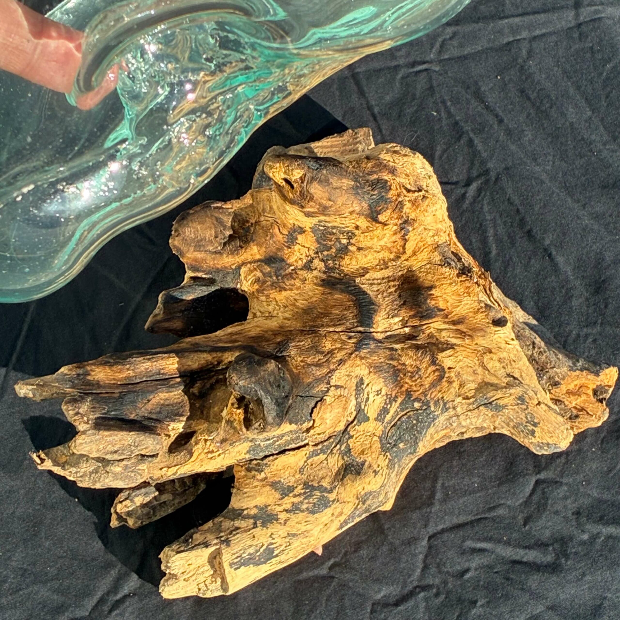 Hver glasskål og trærod er unik. Skålen er formet udfra rodens form.
