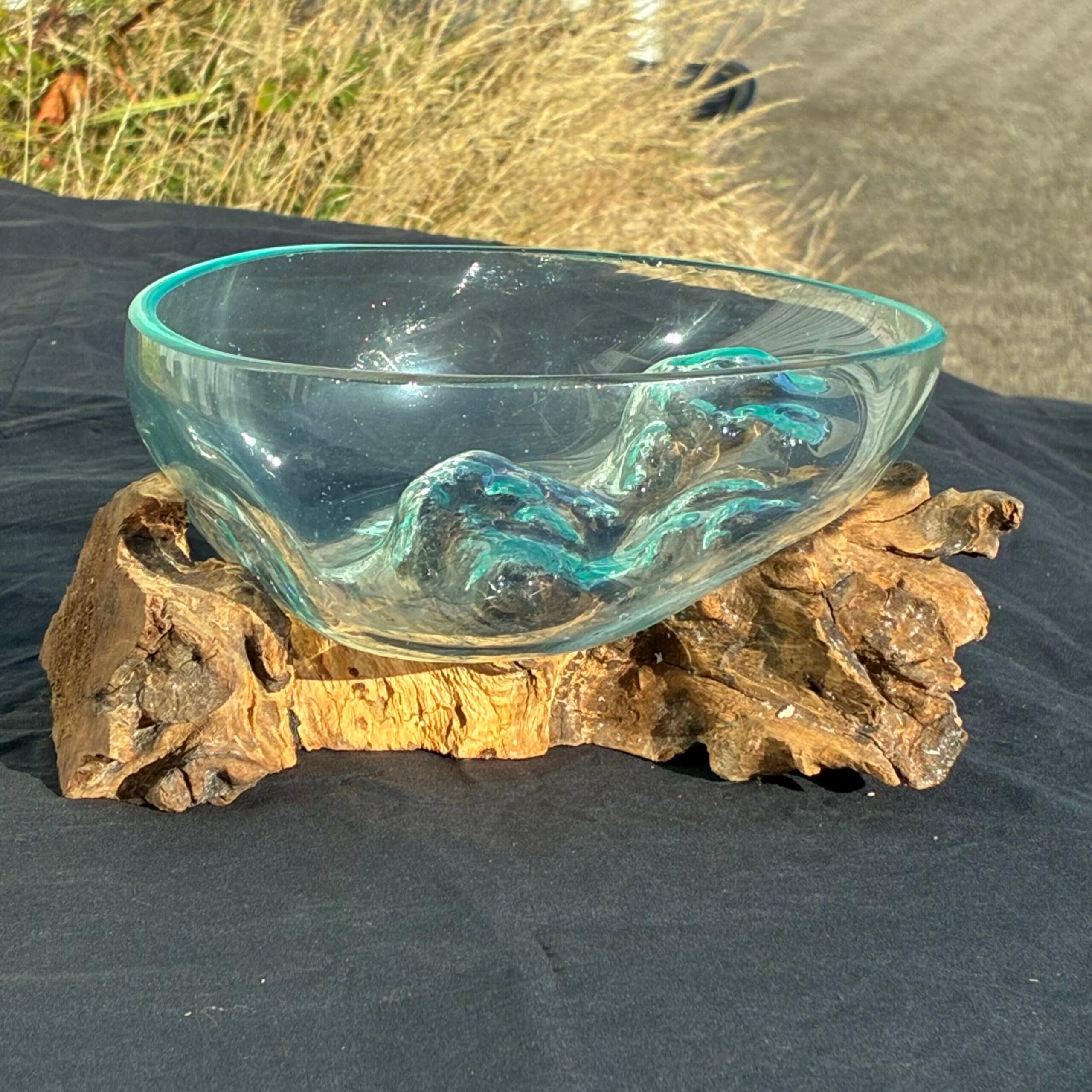 Hver glasskål og trærod er unik. Skålen er formet udfra rodens form.