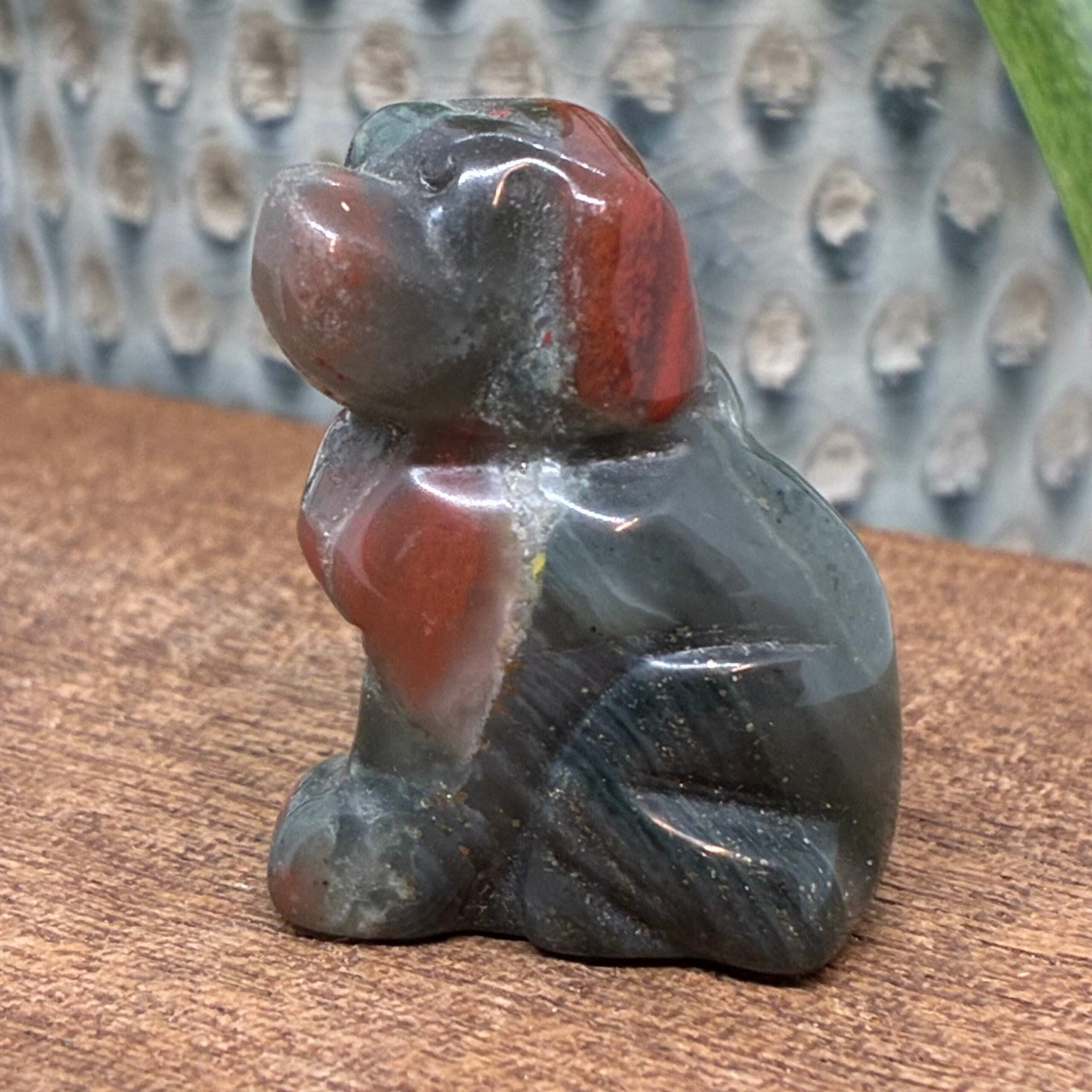 Små søde hunde skåret i forskellige sten/krystaller.