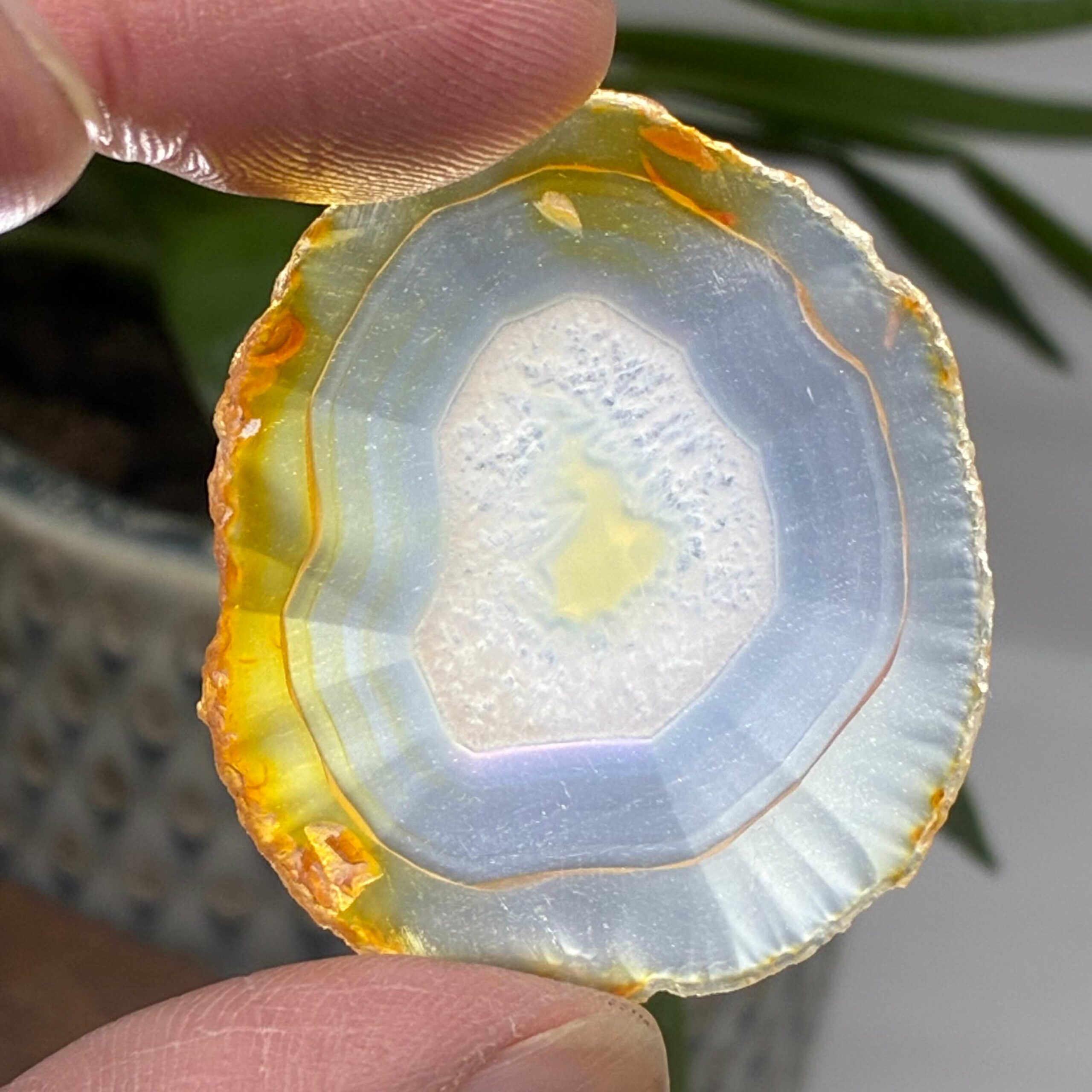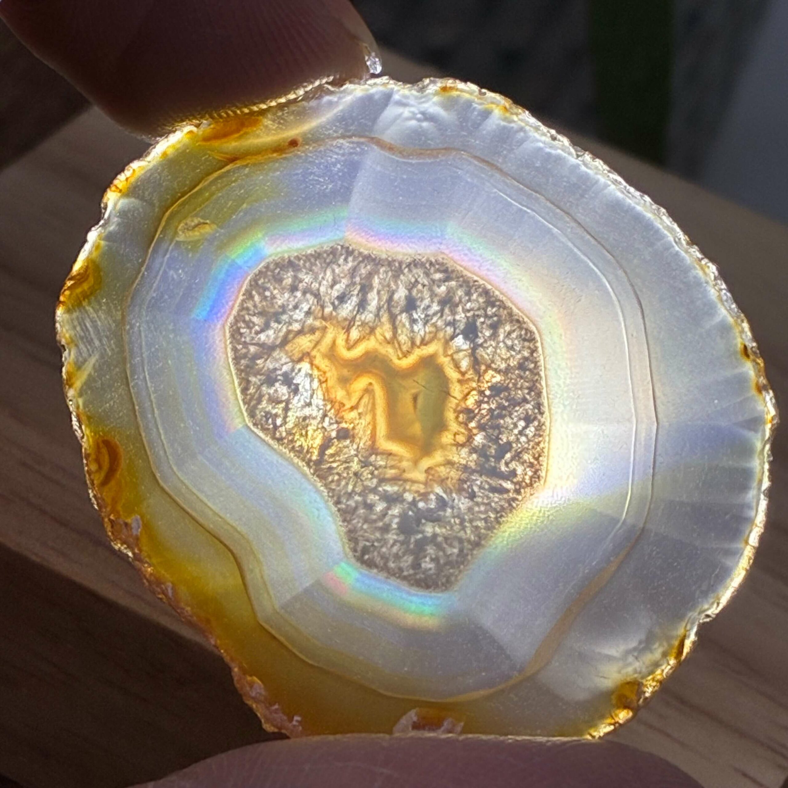 Iris agat er en Iriserende variant af agat hvor der viser en regnbue af farver når lyset trænger gennem.