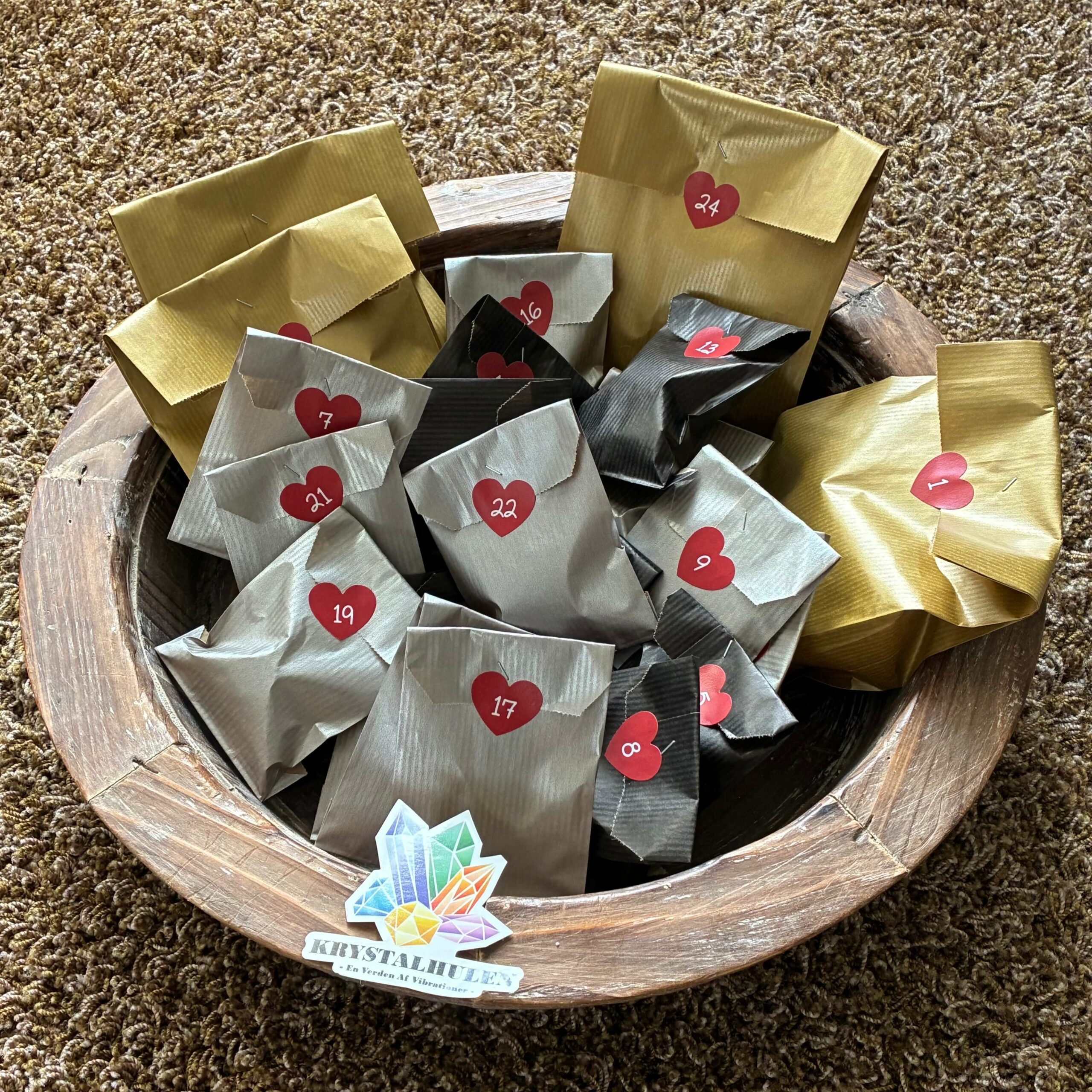 Jeg pakker i år selv hvert eneste kalender ud fra din bestilling. Hver pakke kommer i en pose med nummer på.