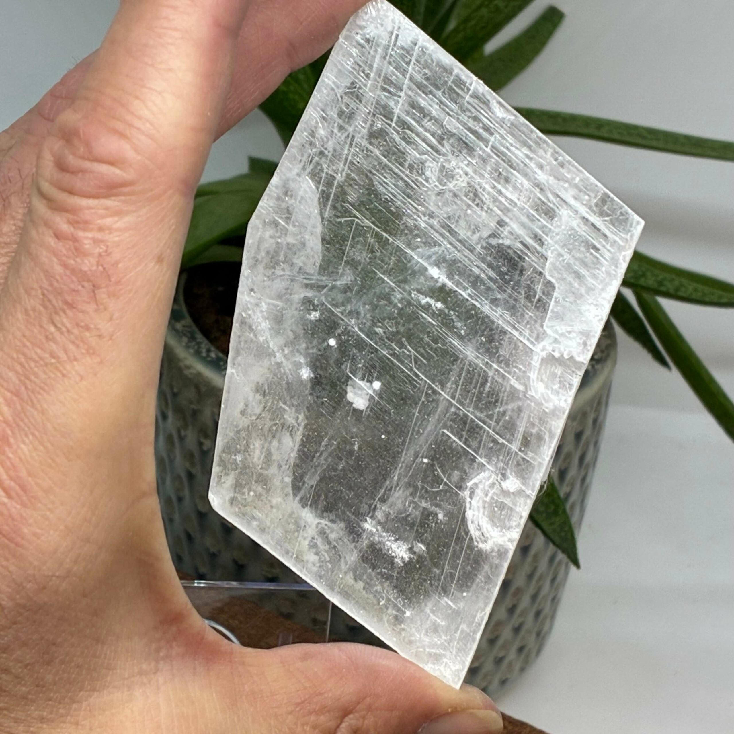 Selenit er en selvrensende krystal, som du kan bruge når du skal rense dine andre krystaller, rum eller genstande.