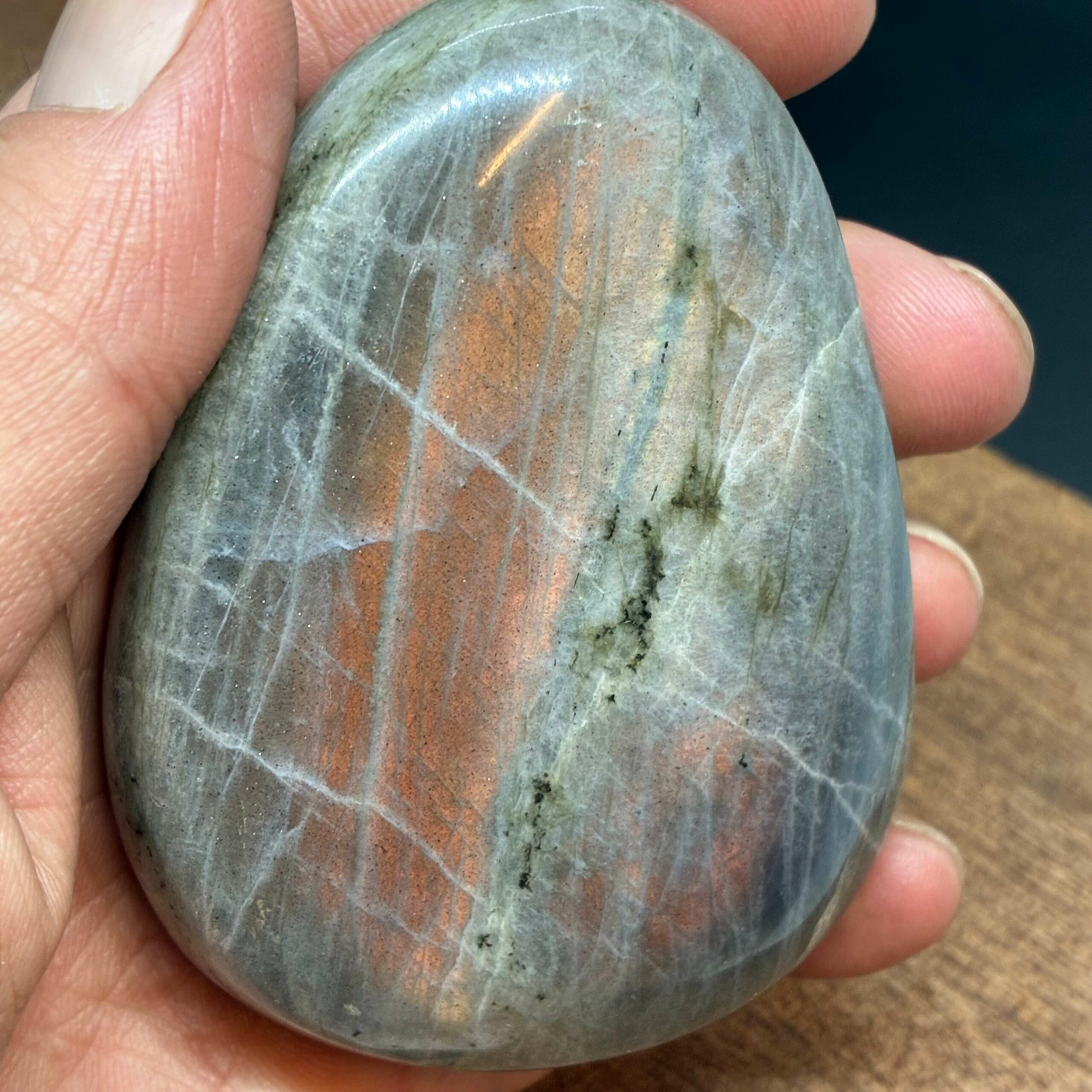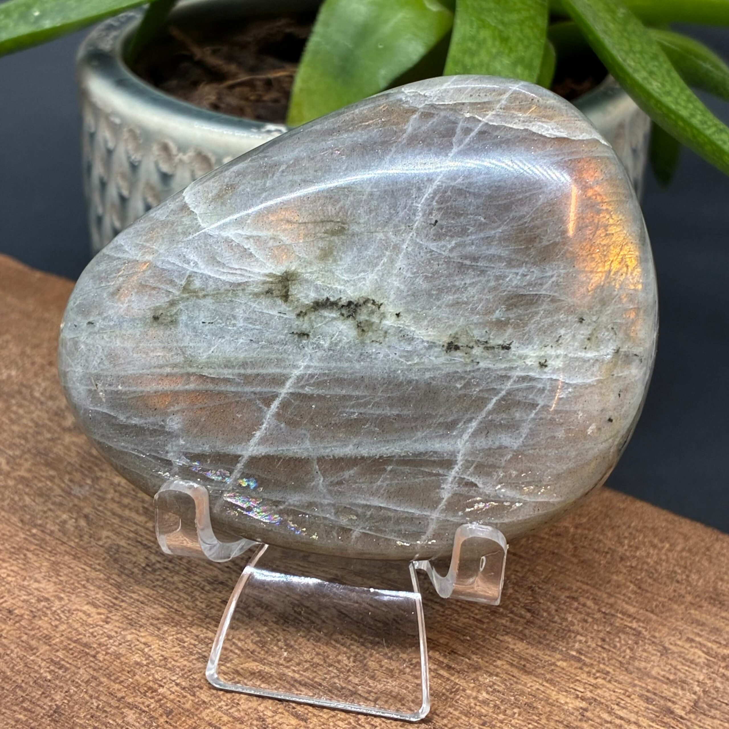 Labradorit har et lækkert farvespil når du drejer den i lyset, en magisk verden i en energifyldt sten.