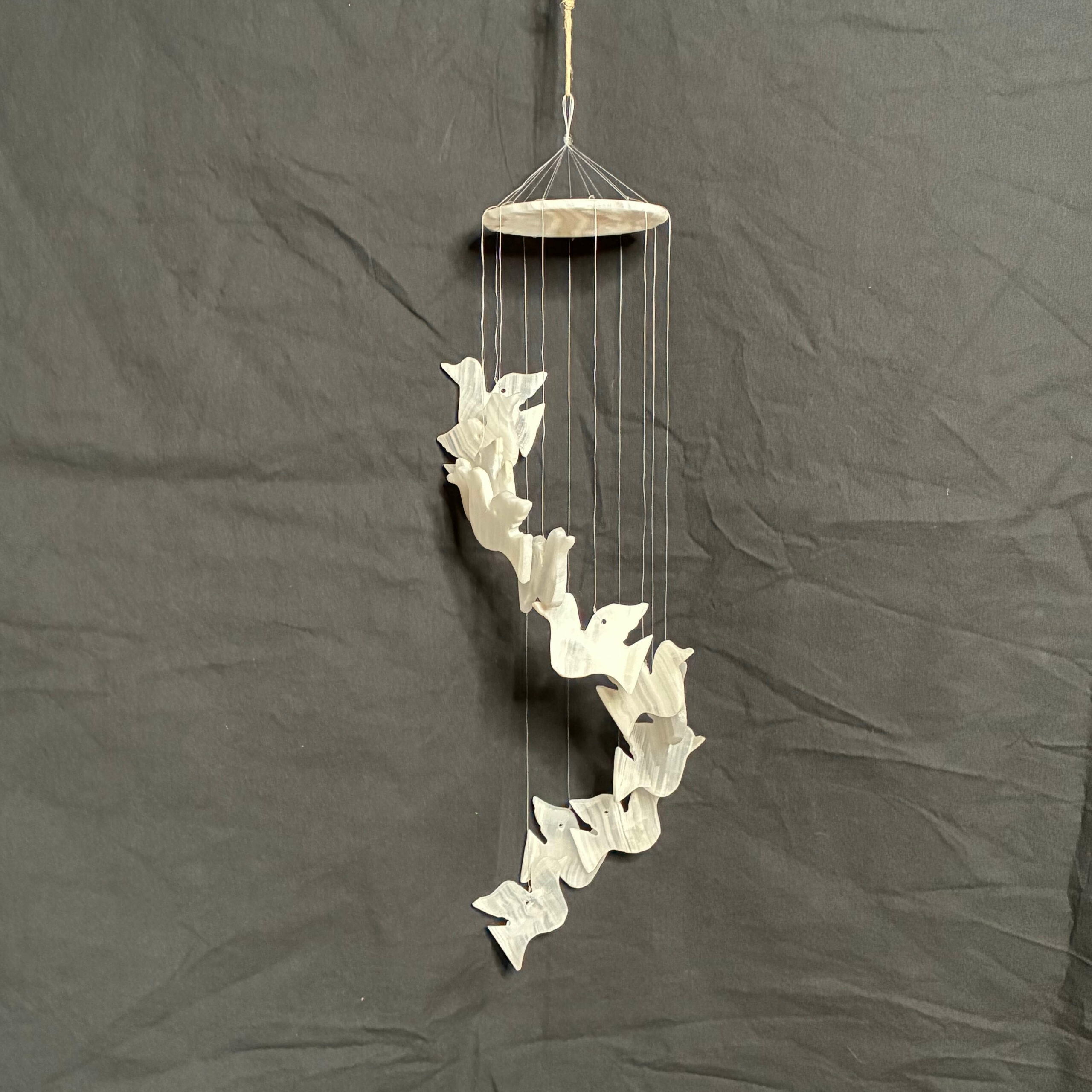 Smuk Vindspil med Fredsduer skåret i Hvid Onyx.