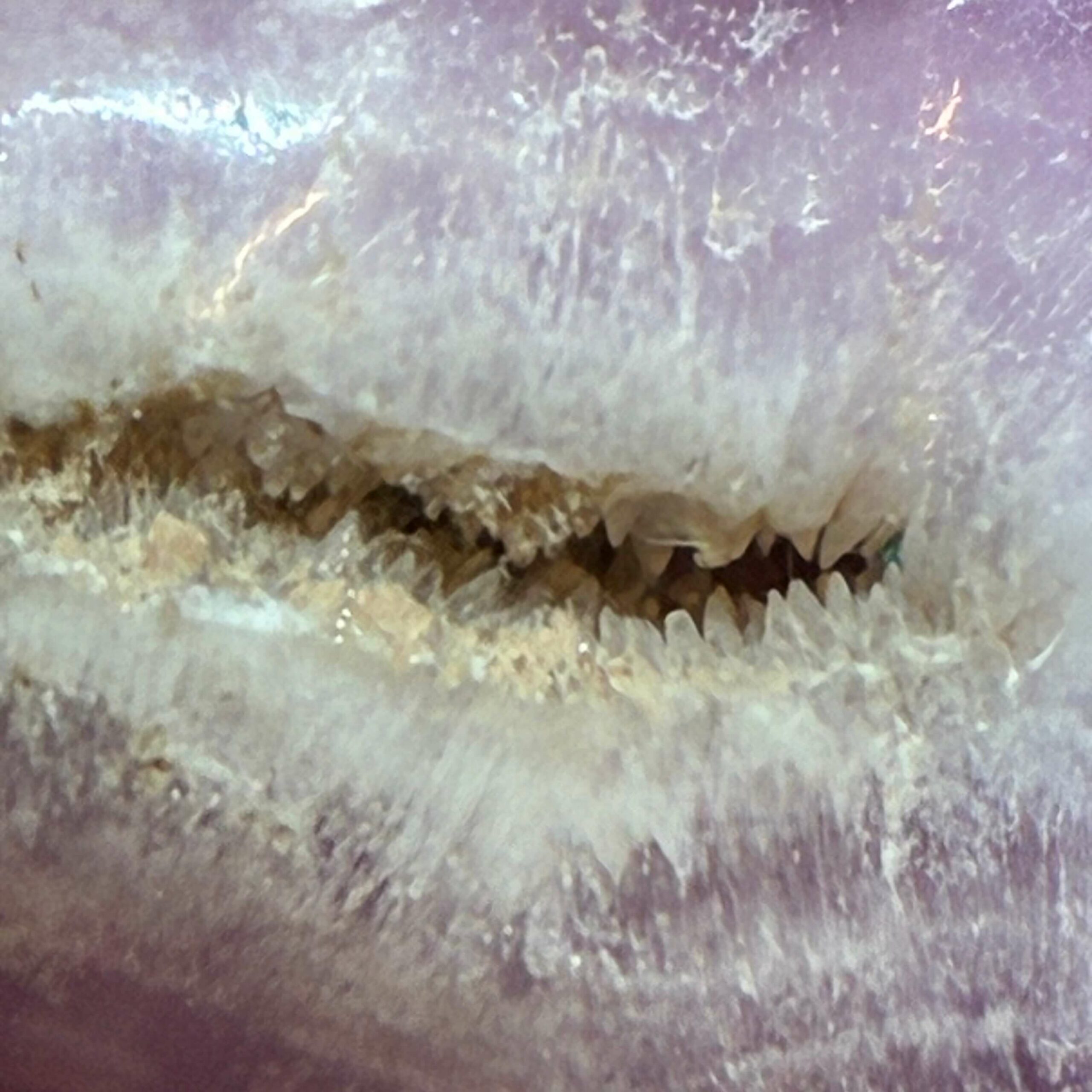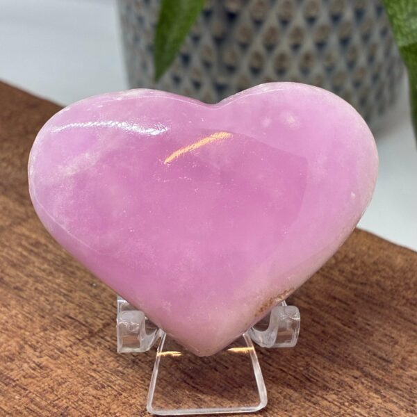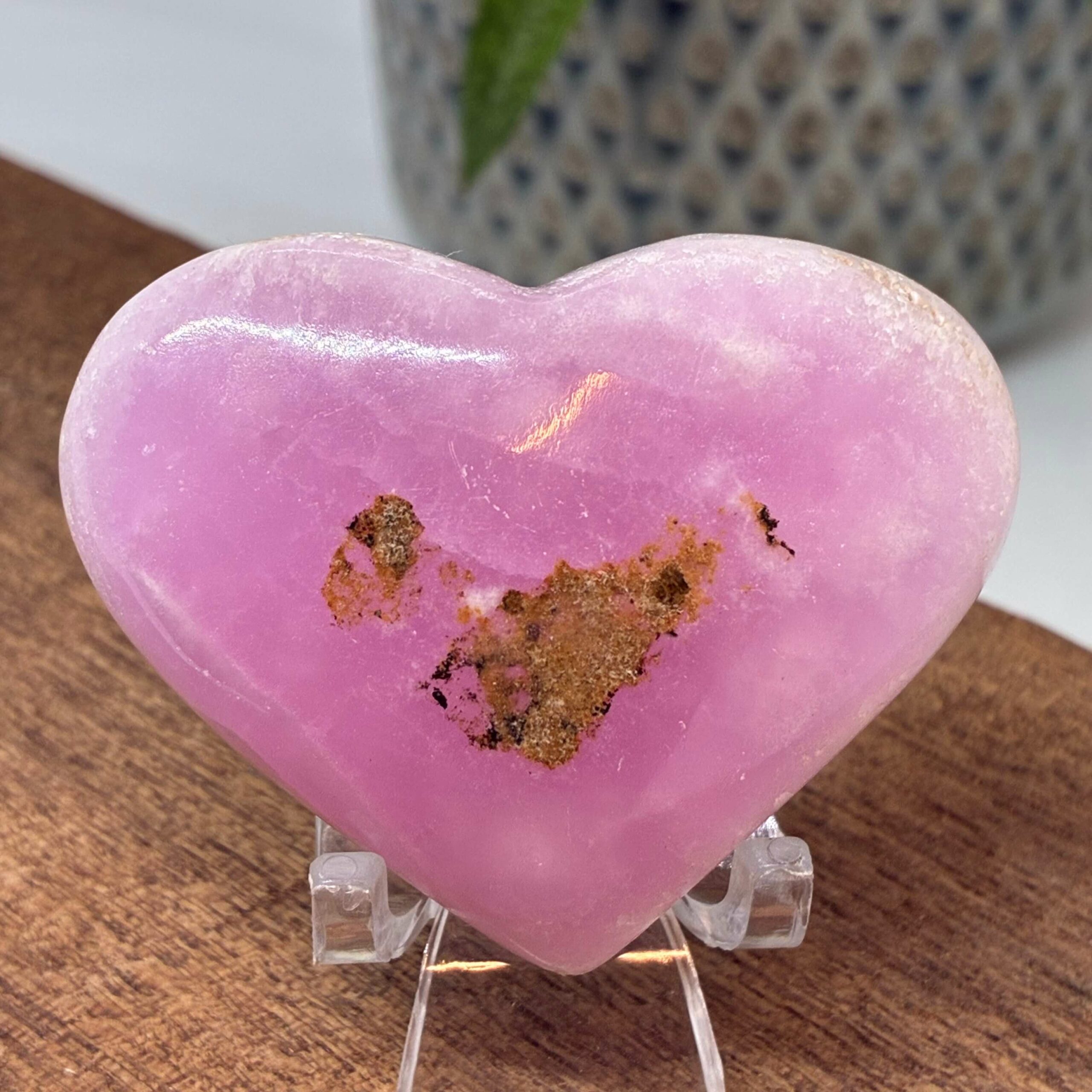 Denne smukke Pinke farve er naturligt dannet i bånd under den hvide Aragonit. Stenen med den flotte polering er så blød og lækker at røre ved.