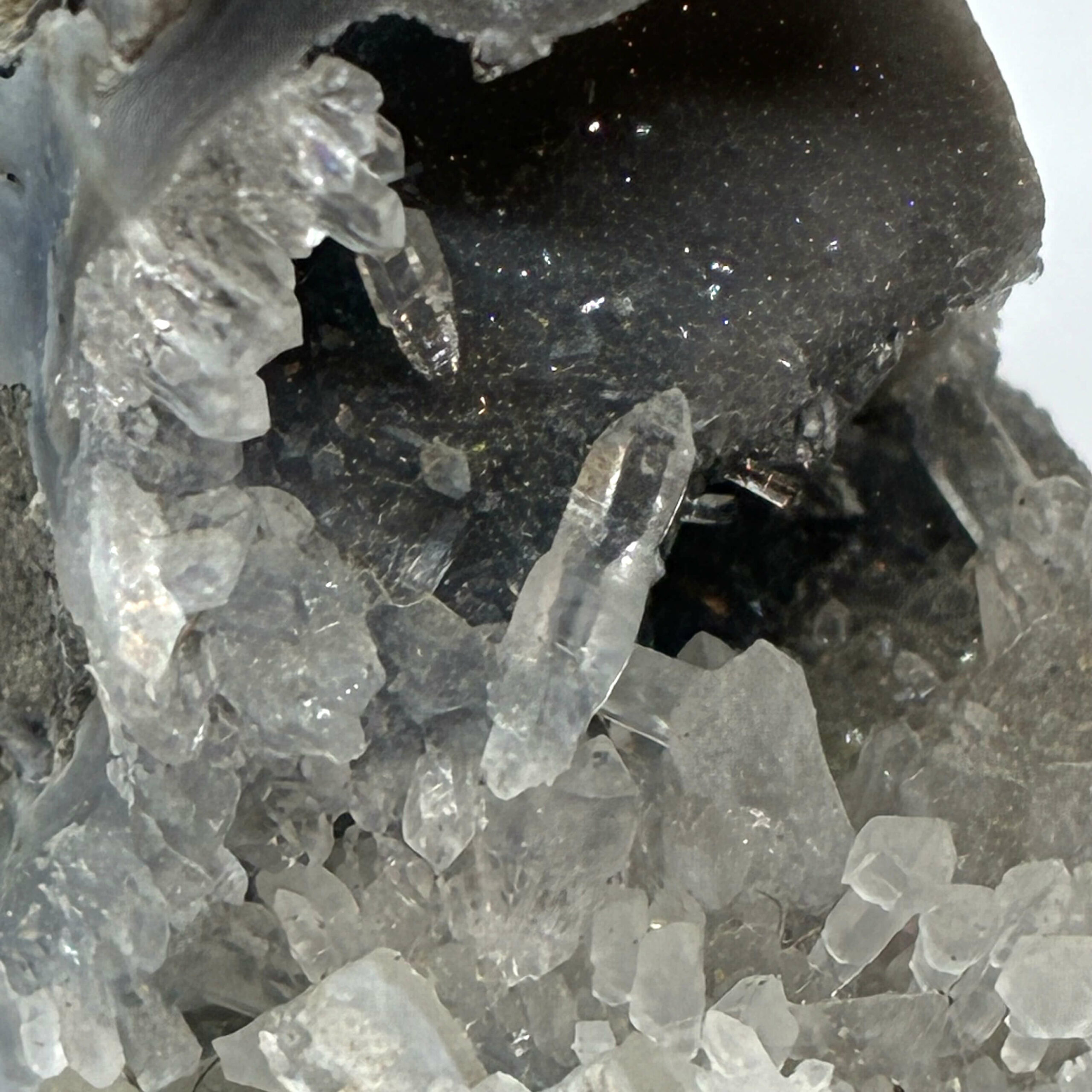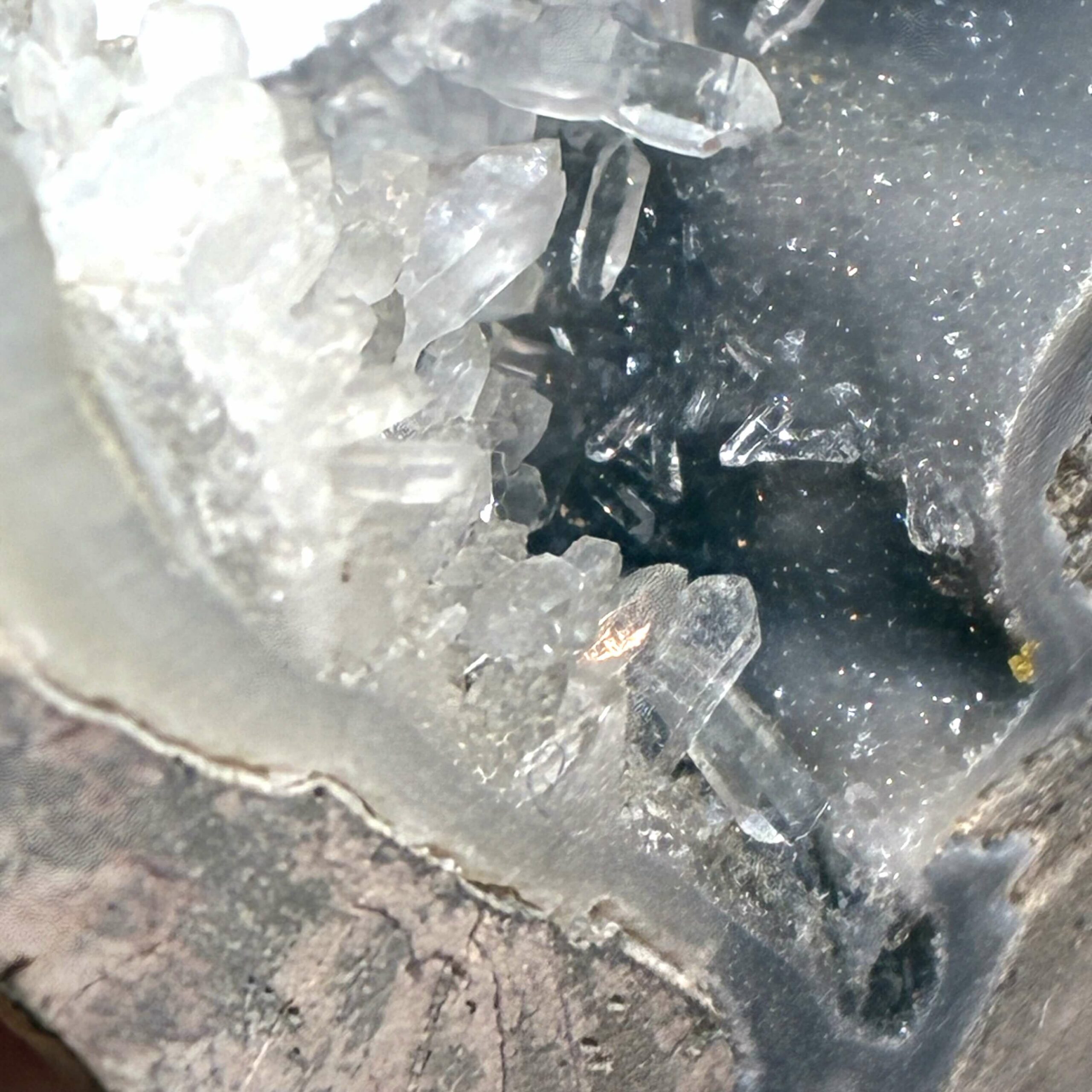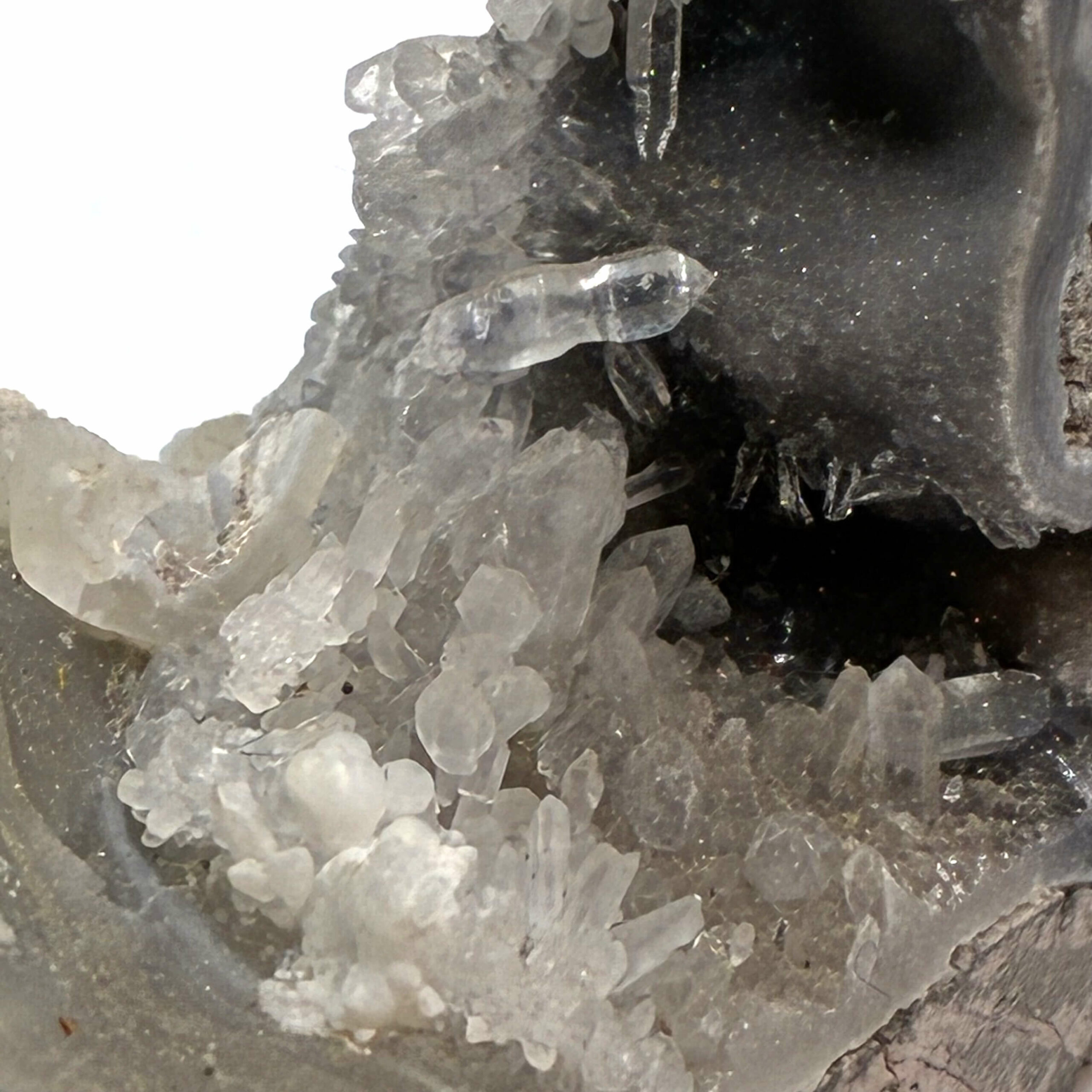 små kvartsspidser i agatgeode. Små septer kvarts spidser