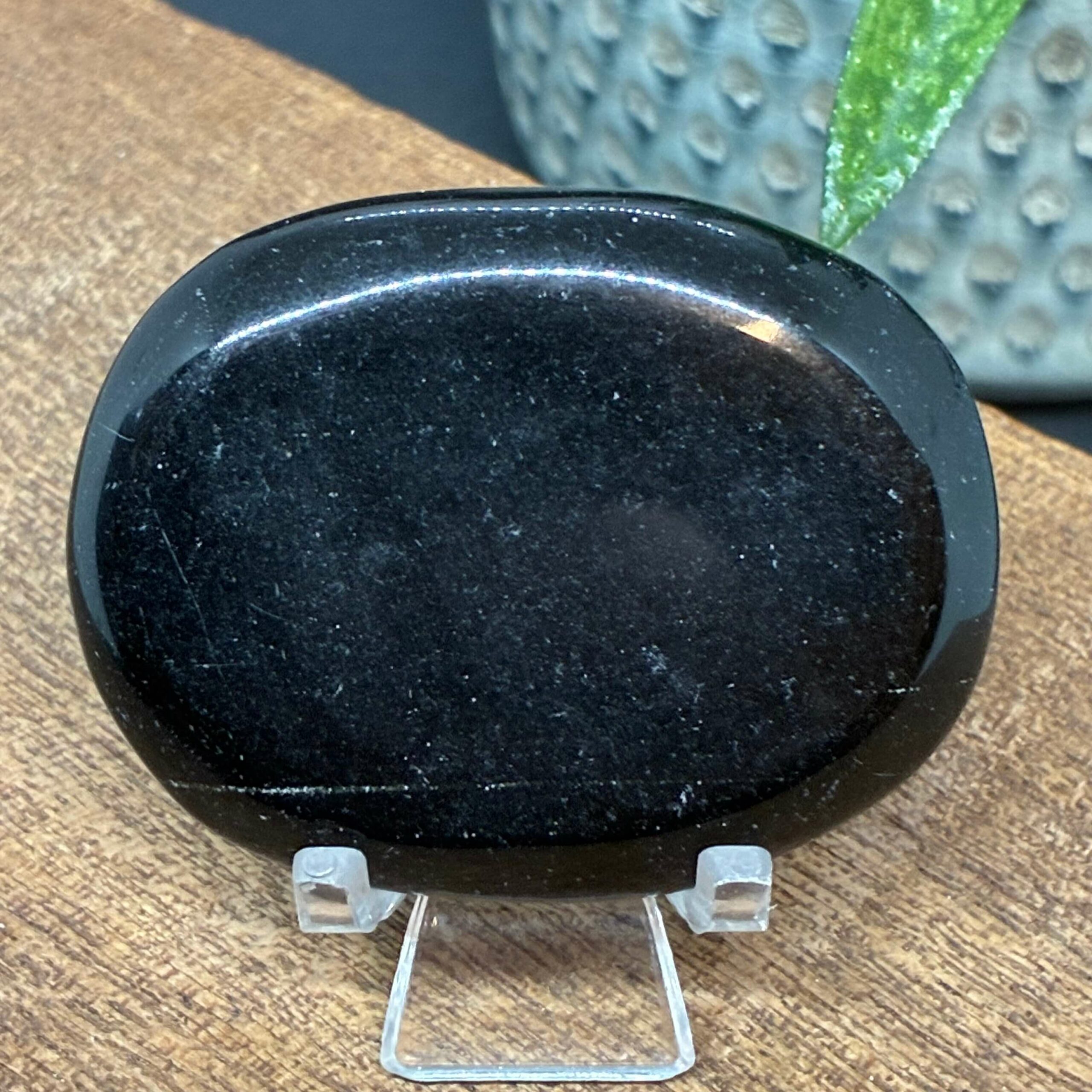En sort turmalin. Giver velvære. Benyttes ofte til at holde dårlige energier ude fra hjemmet og dit personlige rum.