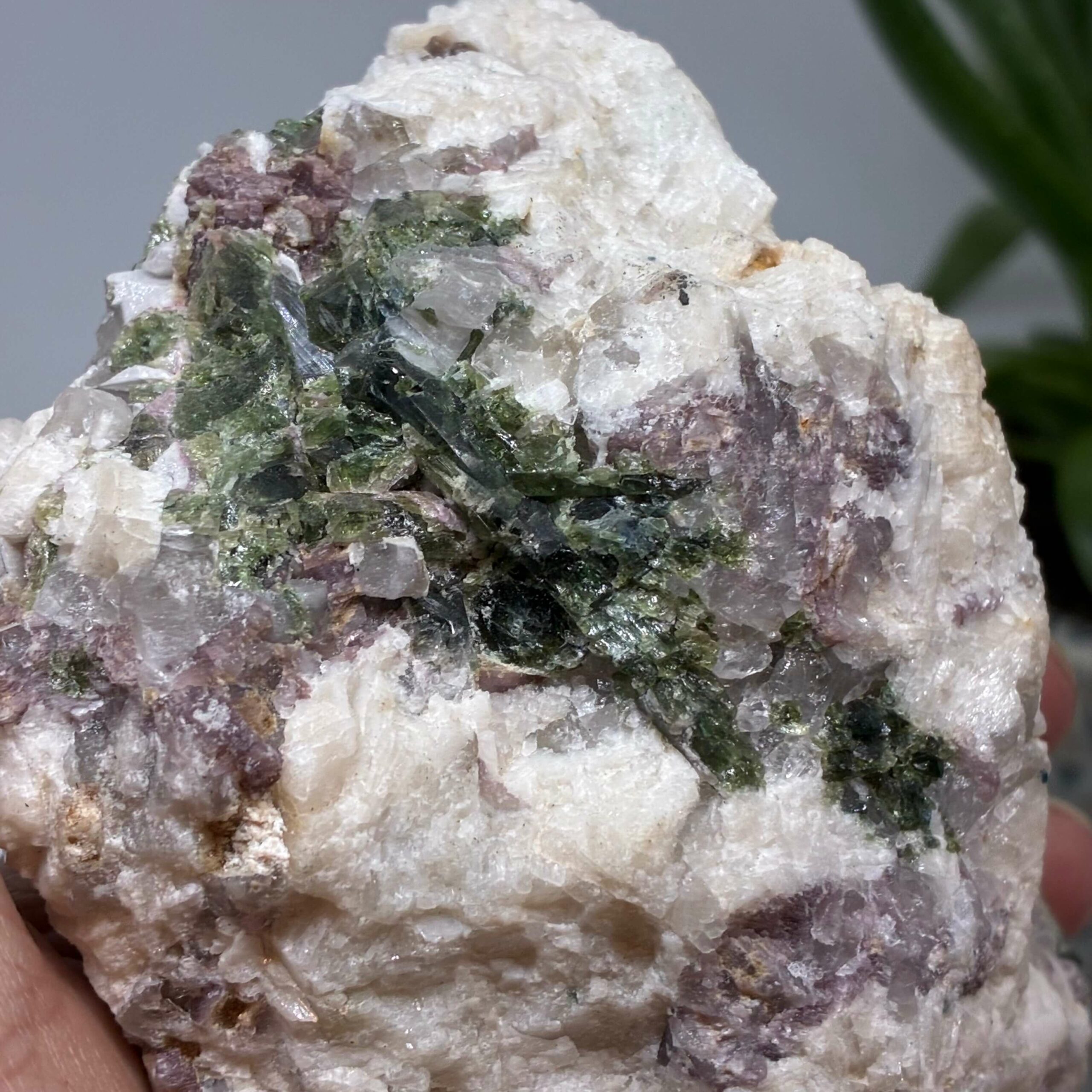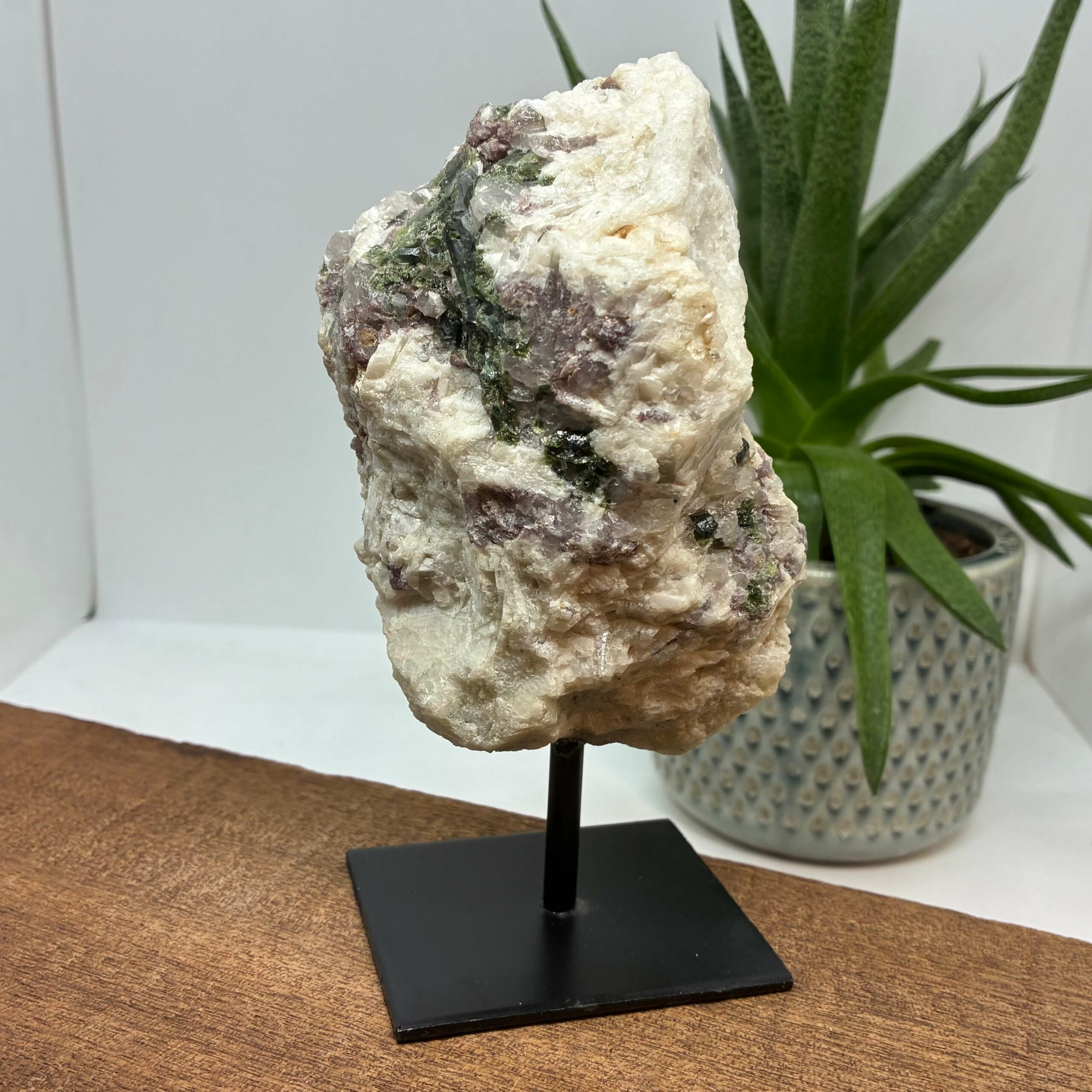 Lækkert stykke fra moder natur med forskellige mineraler. Præsenteret på en sort Metalfod